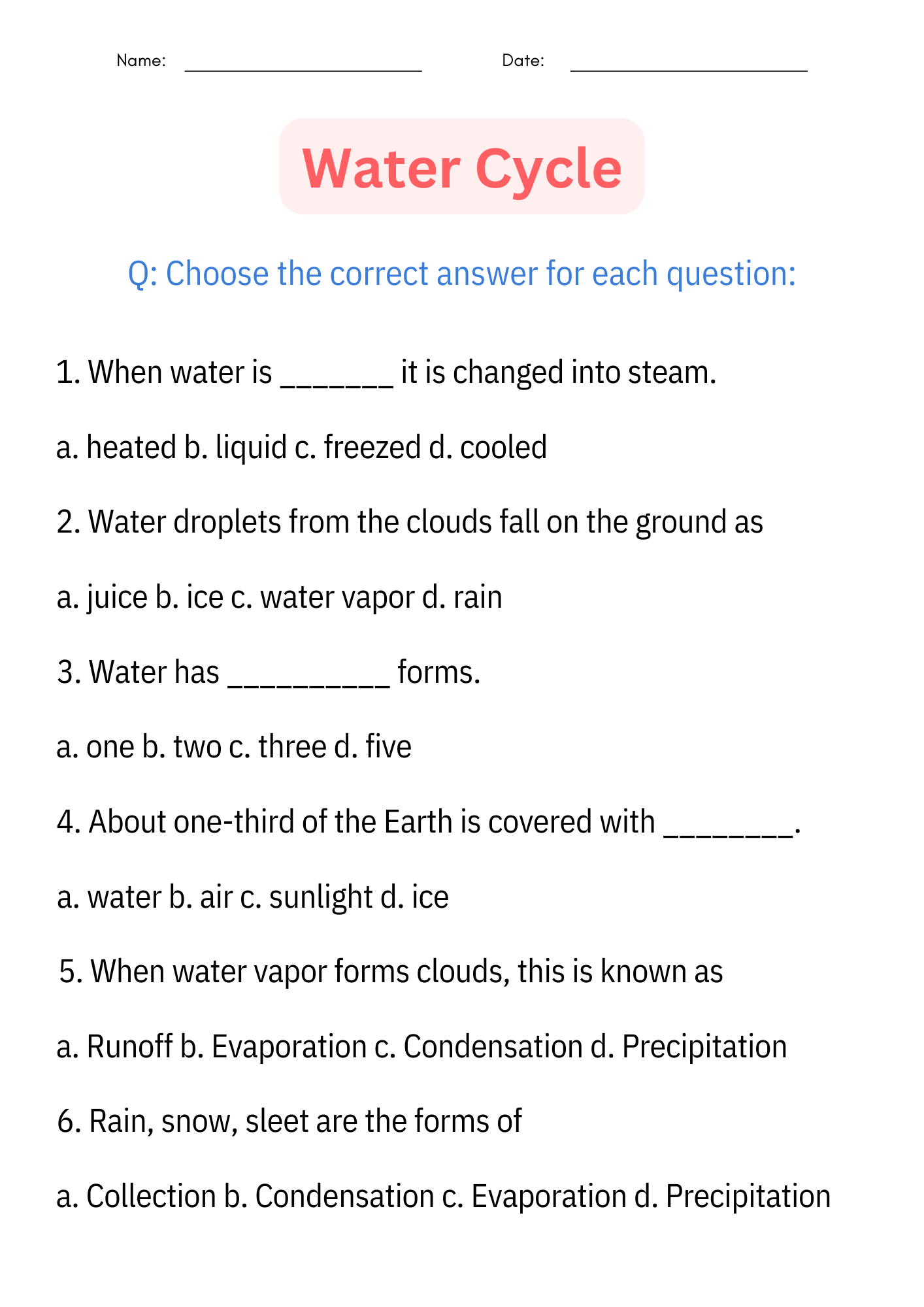Printable Diagram Science Water Cycle Worksheet And Activities For Grade 1 2 3 Made By Teachers