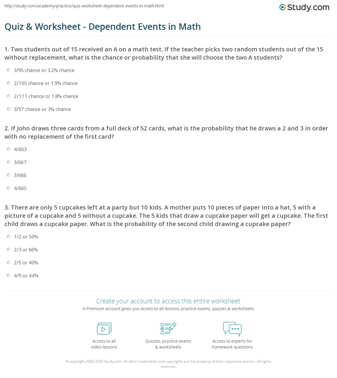Quiz Worksheet Dependent Events In Math Study
