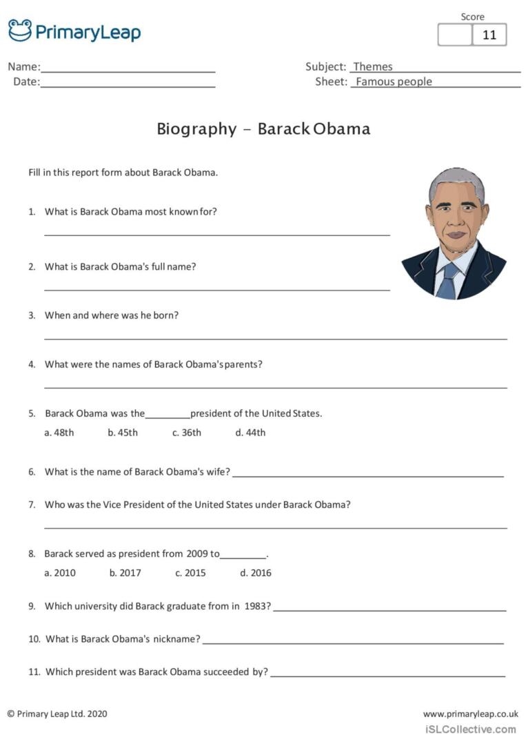 Biography Barack Obama Creative Wr English ESL Worksheets Pdf Doc