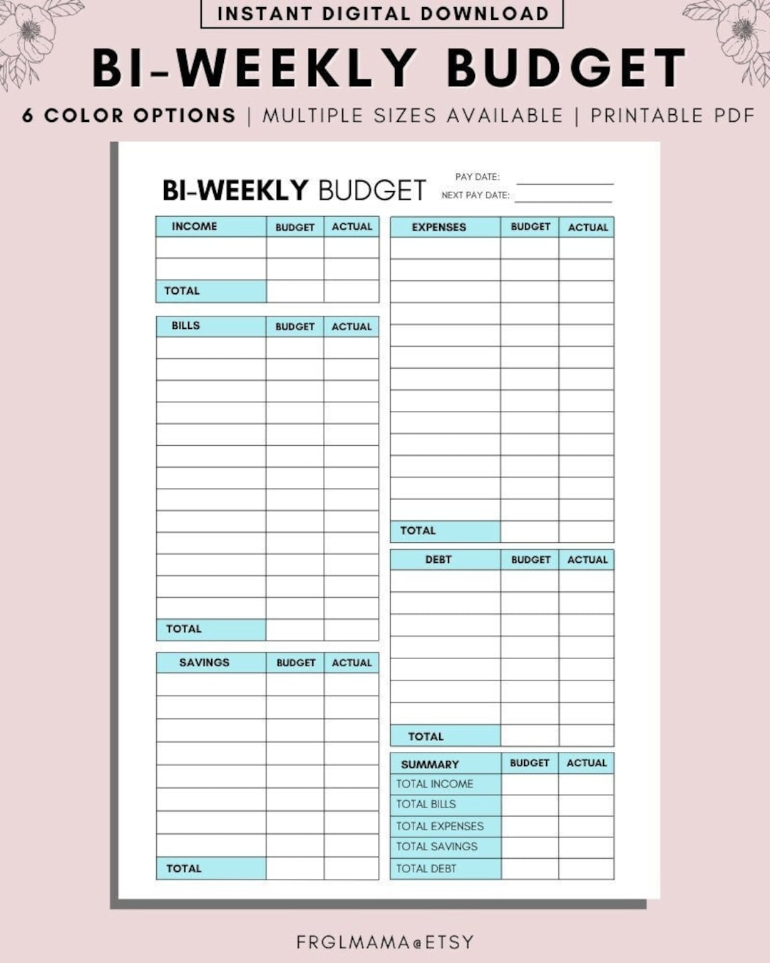 Bi Weekly Budget Planner Template Paycheck Budget Printable Budget Template A4 A5 Letter PDF Etsy