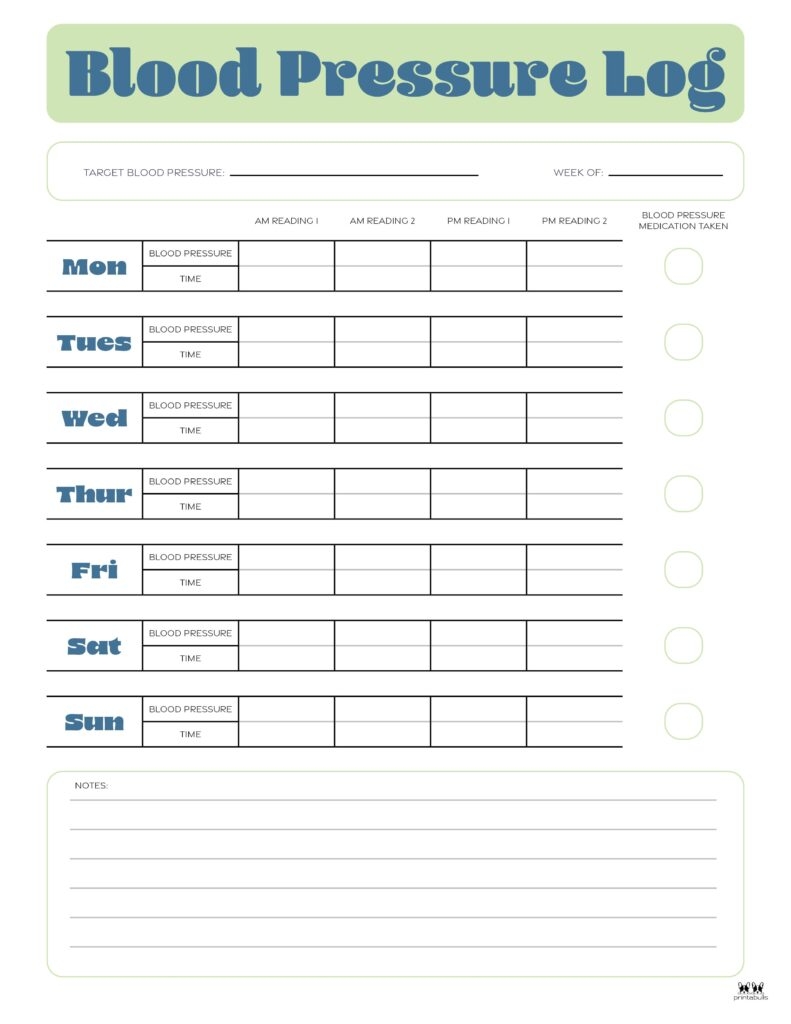 Blood Pressure Logs 25 FREE Printables Printabulls