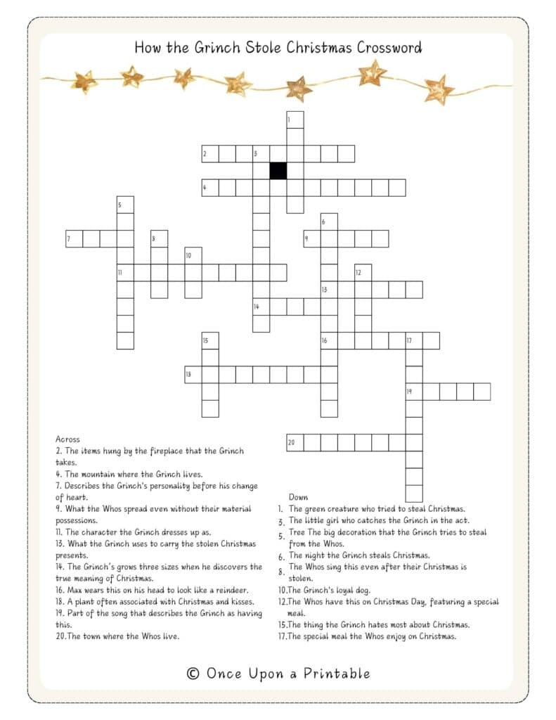 5 How The Grinch Stole Christmas Crossword Puzzles Free Once Upon A Printable