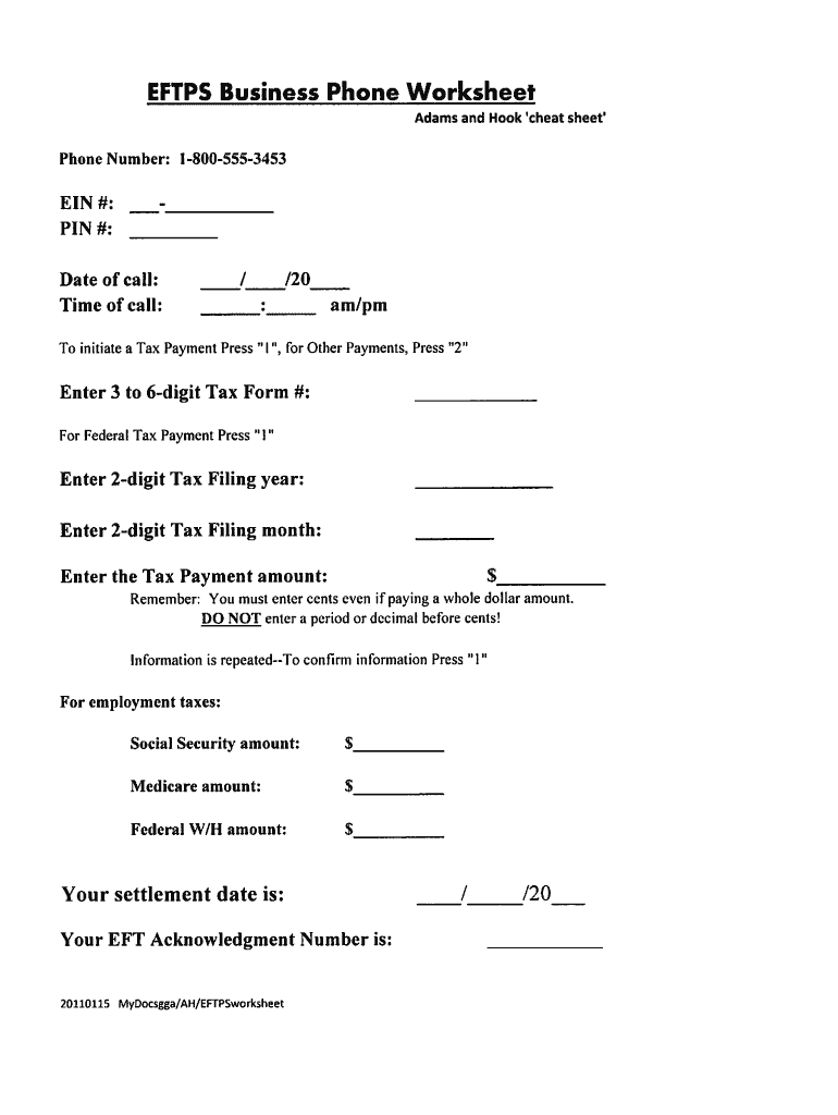 Eftps Business Phone Worksheet Fill Out Sign Online DocHub