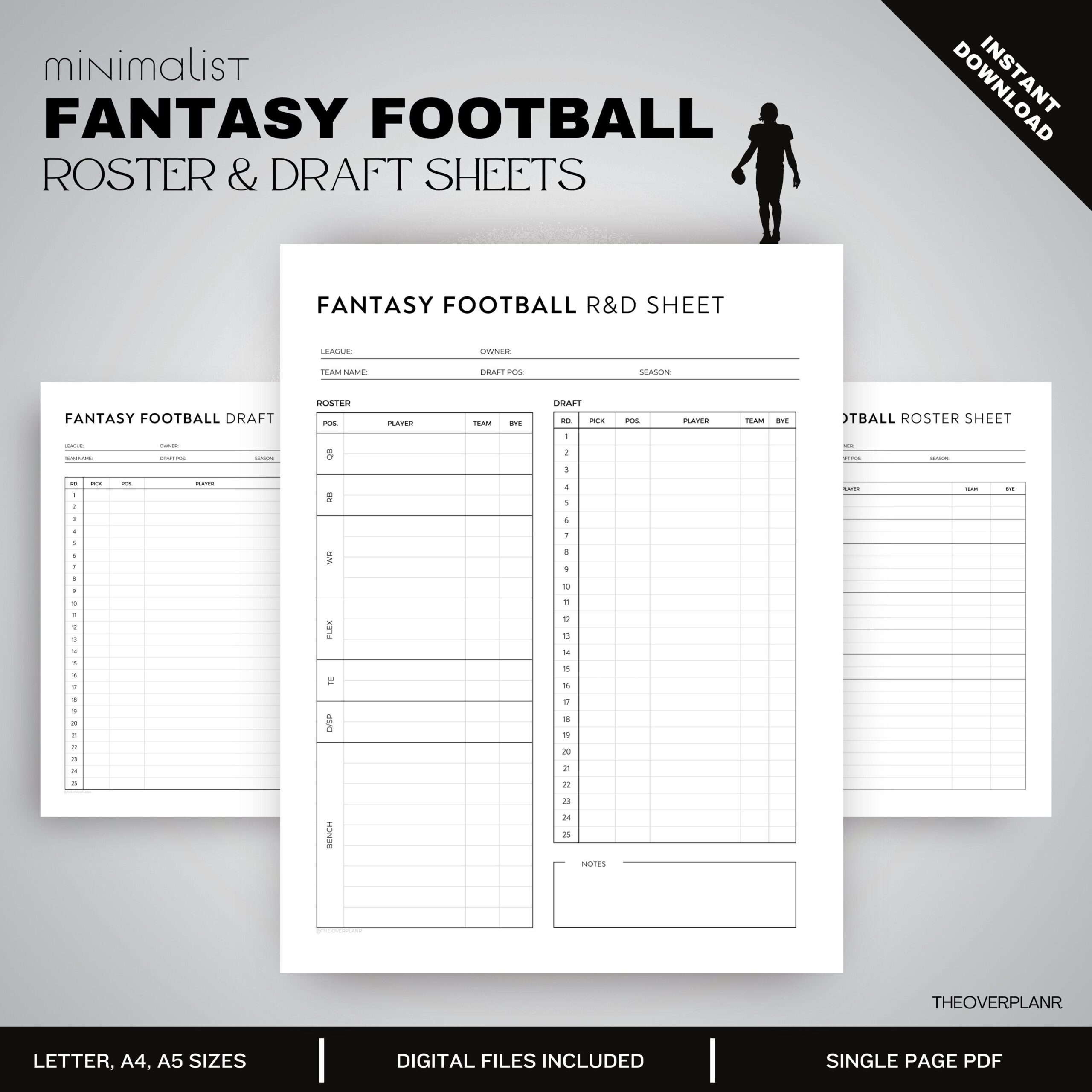 Fantasy Football Draft Sheet Template Printable Sheet Digital Template PDF US Letter A4 A5 Instant Download IPad Template Etsy