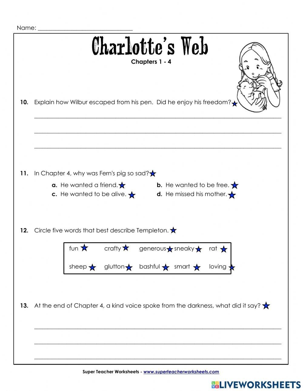 Charlottes Web Chapters 1 4 Questions Online Exercise For Live Worksheets Library