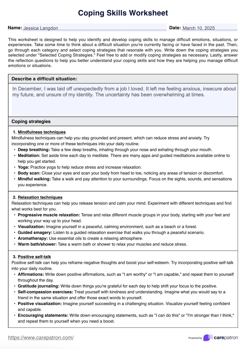 Coping Skills Worksheets Example Free PDF Download