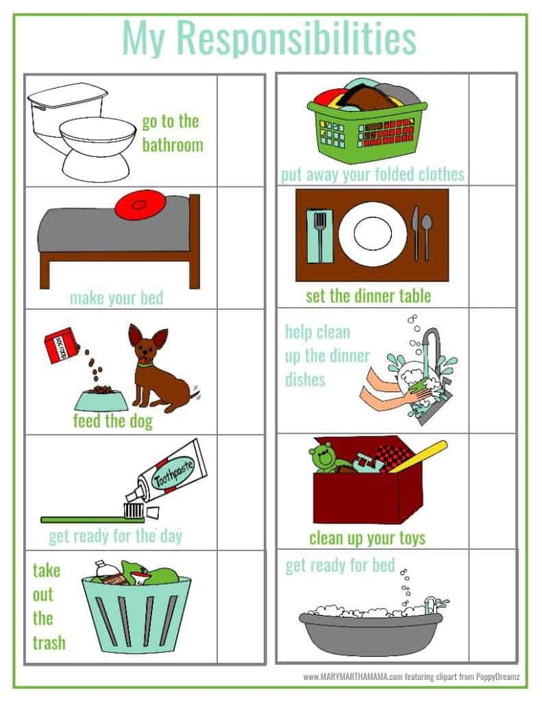 Preschool Responsibility Chart Mary Martha Mama