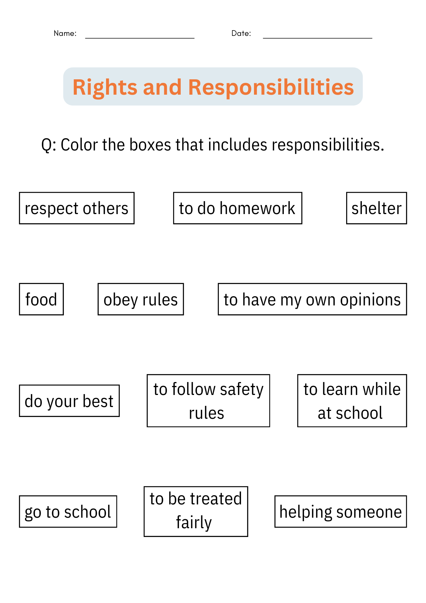 What Is Responsibility Worksheet