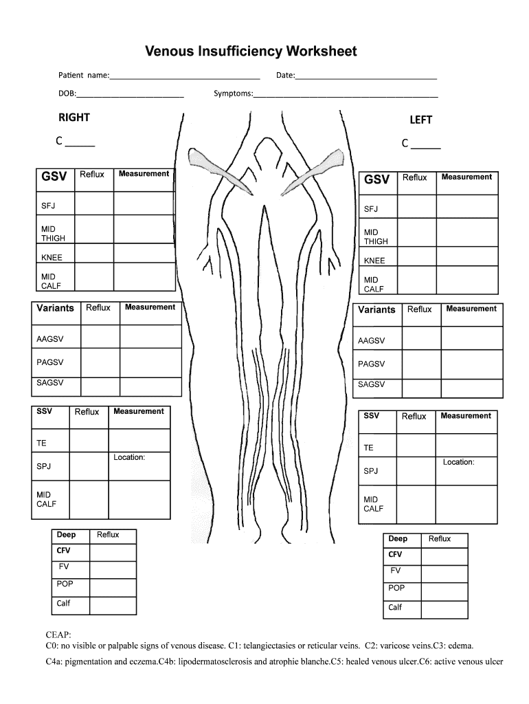 Venous Insufficiency Worksheet Fill Online Printable Fillable Blank PdfFiller