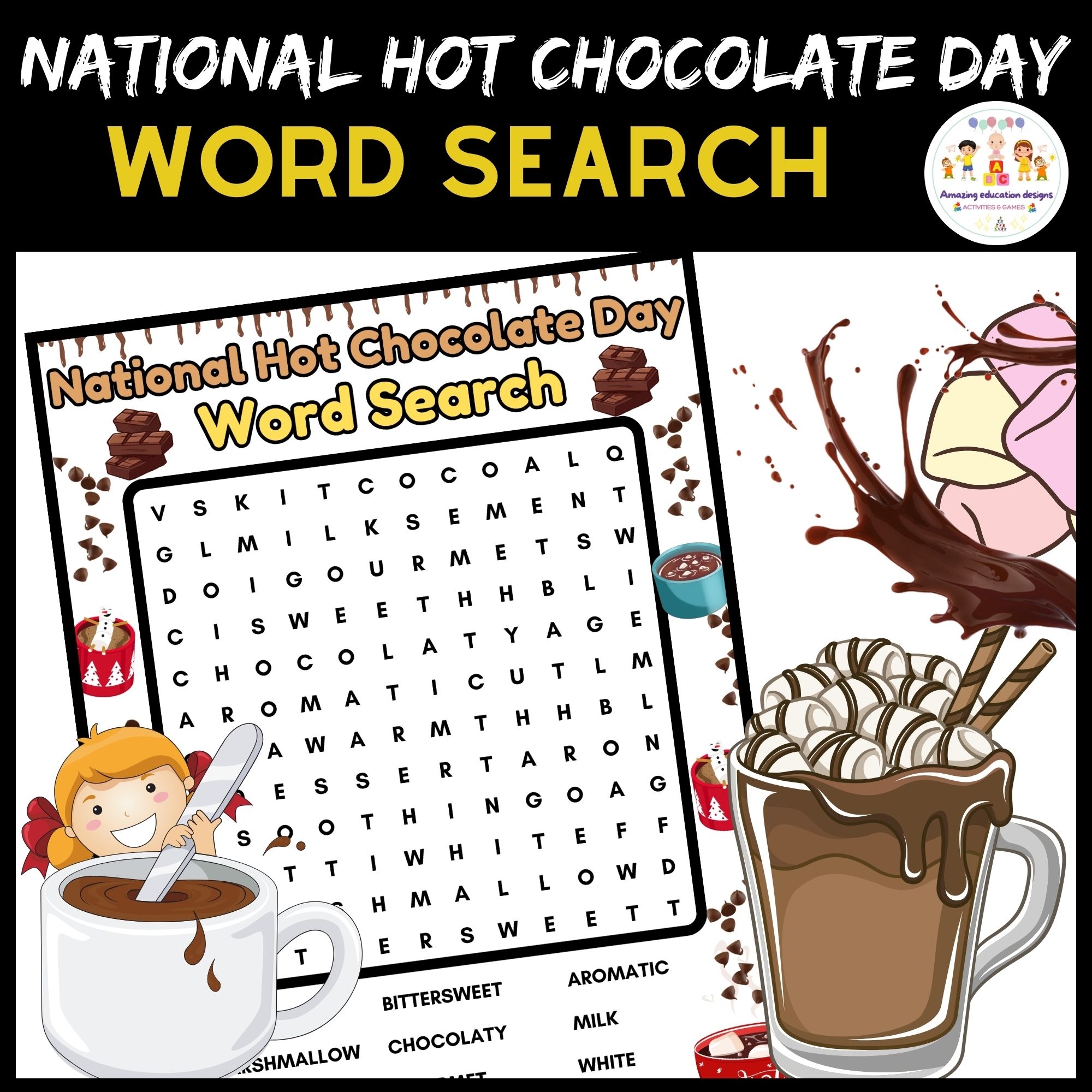 Activities Word Search Worksheets National Hot Chocolate Day Made By Teachers