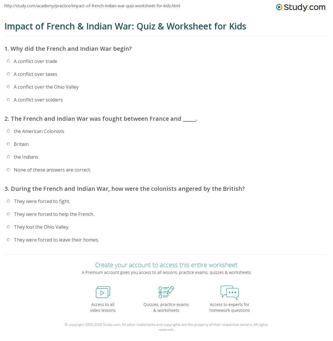 Impact Of French Indian War Quiz Worksheet For Kids Study