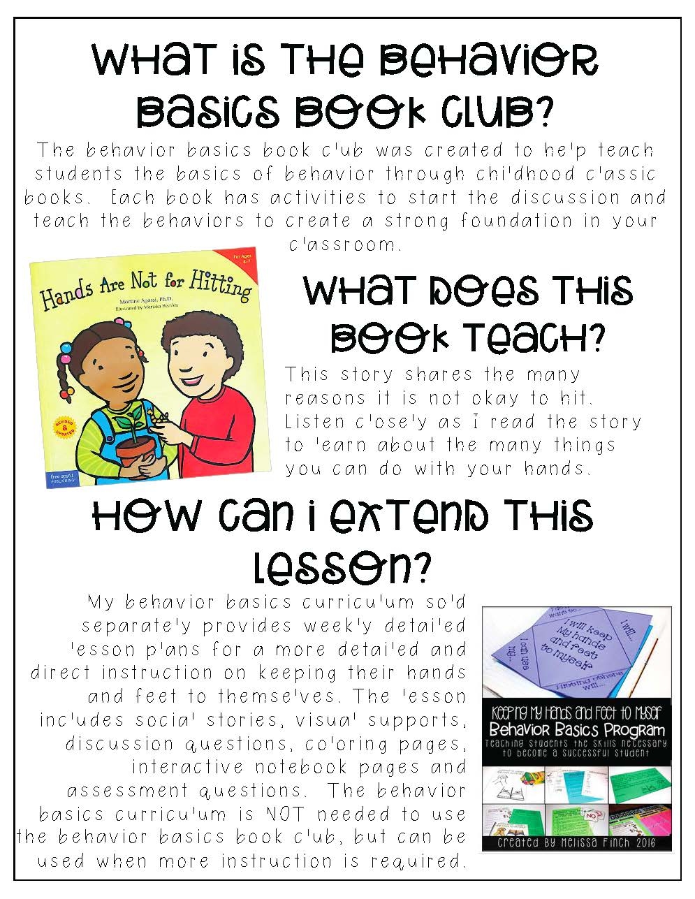 Hands Are Not For Hitting Behavior Basics Book Club Autism Adventures