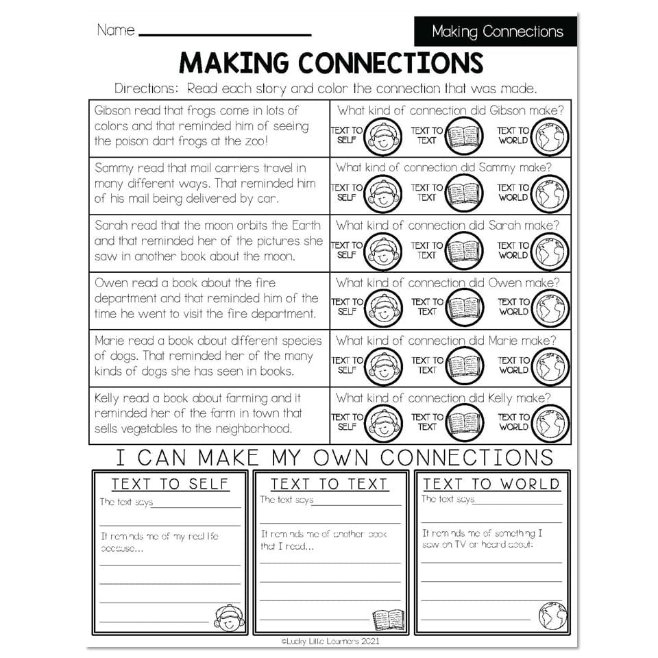 One of the key benefits of using a making connections worksheet printable is that it allows you to visualize information in a structured and organized manner. This can help you identify patterns, relationships, and similarities between different ideas, making it easier to understand complex concepts.