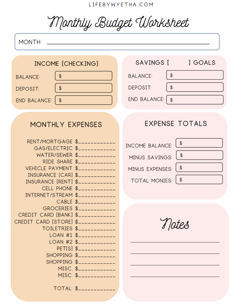 Printable Debt to Income Worksheet