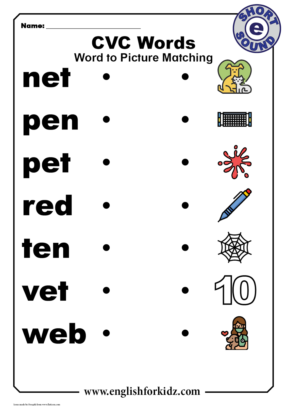 English For Kids Step By Step CVC Words Worksheets Short E Sound