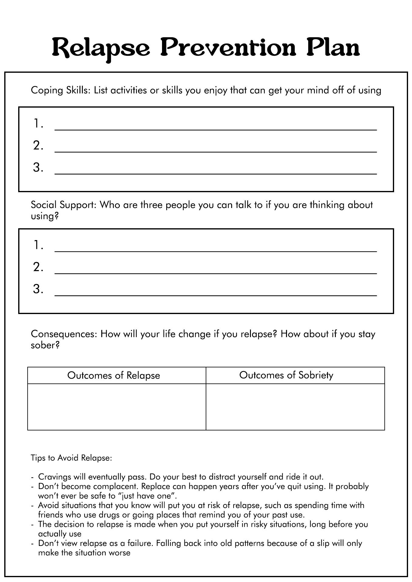 Relapse Prevention Plan Template