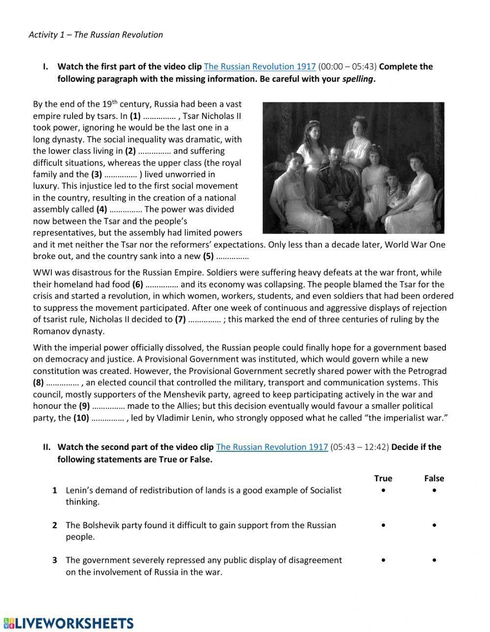The Russian Revolution Interactive Worksheet Live Worksheets Worksheets Library