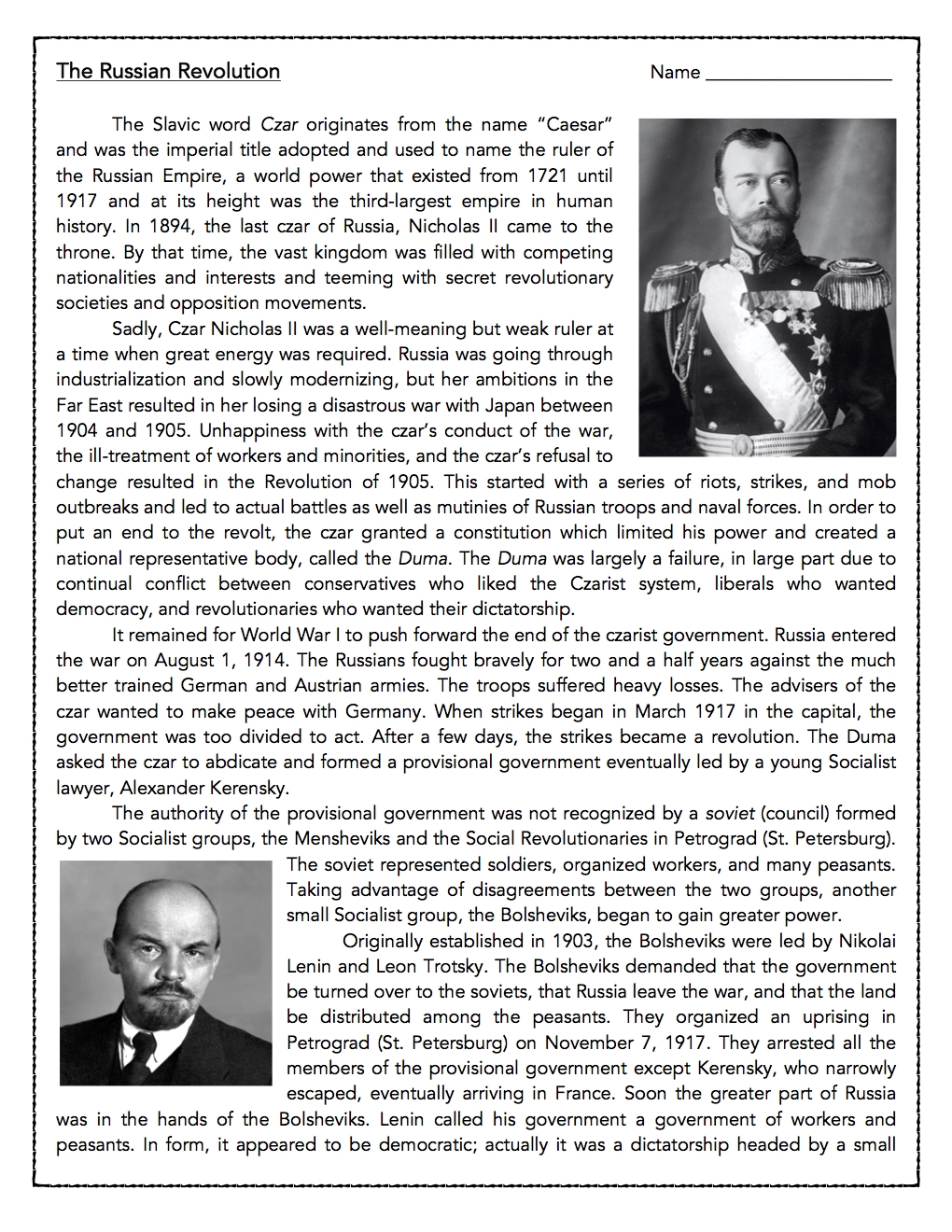 russian revolution activity worksheets printable