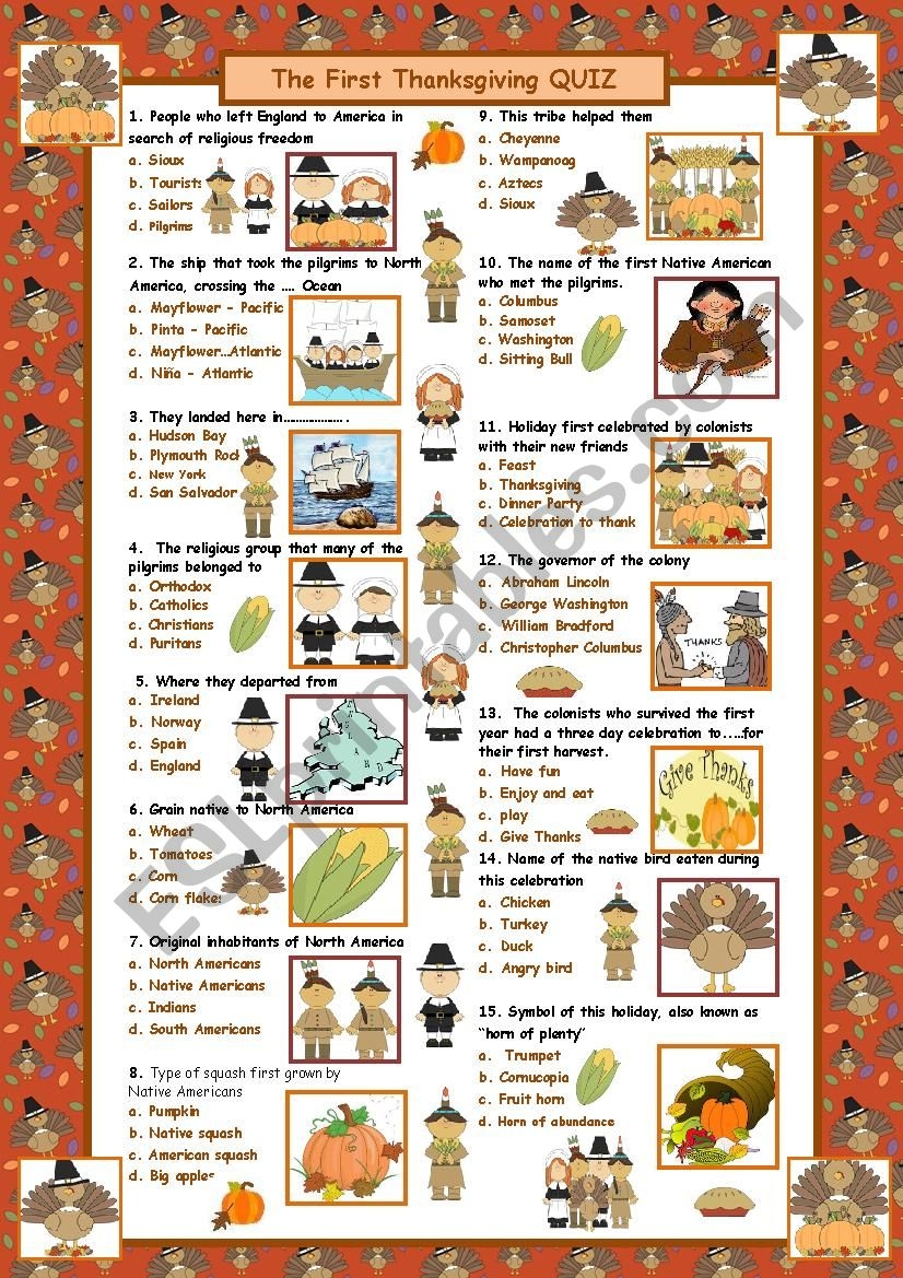 The First Thanksgiving Quiz with Answers ESL Worksheet By Maguyre