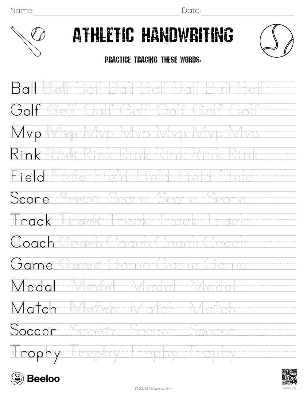 Sports themed Word Tracing Worksheets Beeloo Printable Crafts And Activities For Kids